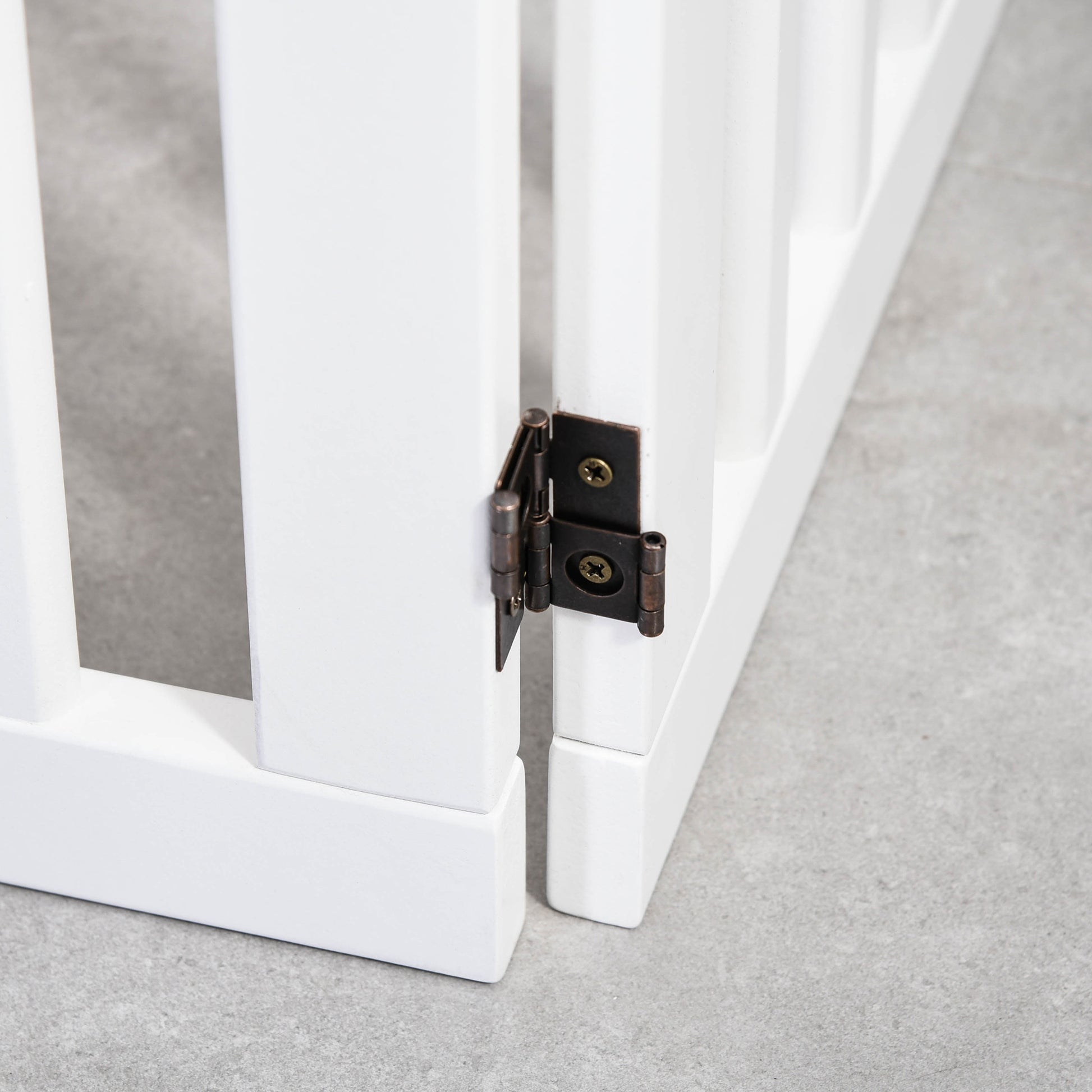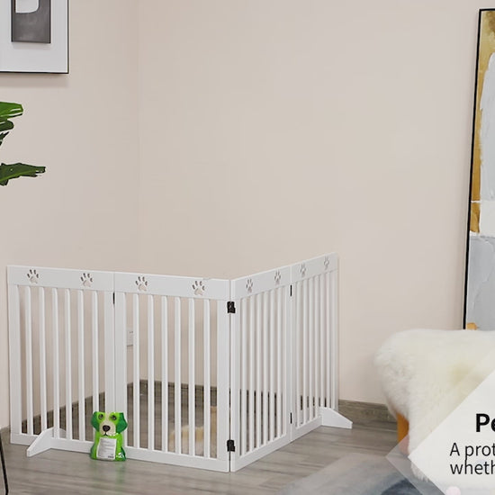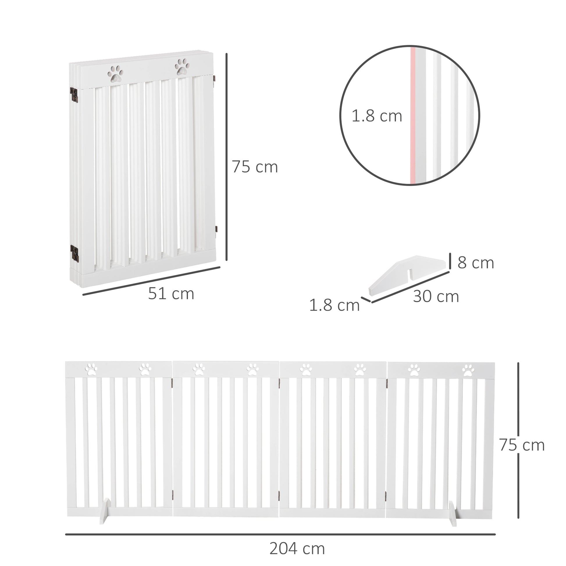 PawHut Pet Gate 4 Panel Wooden Foldable Fence Freestanding Dog Safety Barrier with 2 Support Feet for Doorways Stairs 80'' x 30'' White