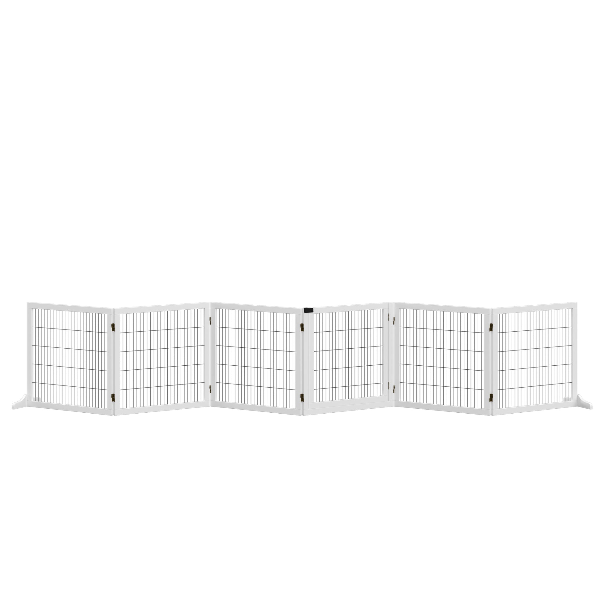 PawHut Pet Gate Wooden Dog Safety Barrier, Freestanding Foldable Fence, w/ 6 Panels, 2 Support Feet, House Doorway Stairs, Small & Medium Dogs, White