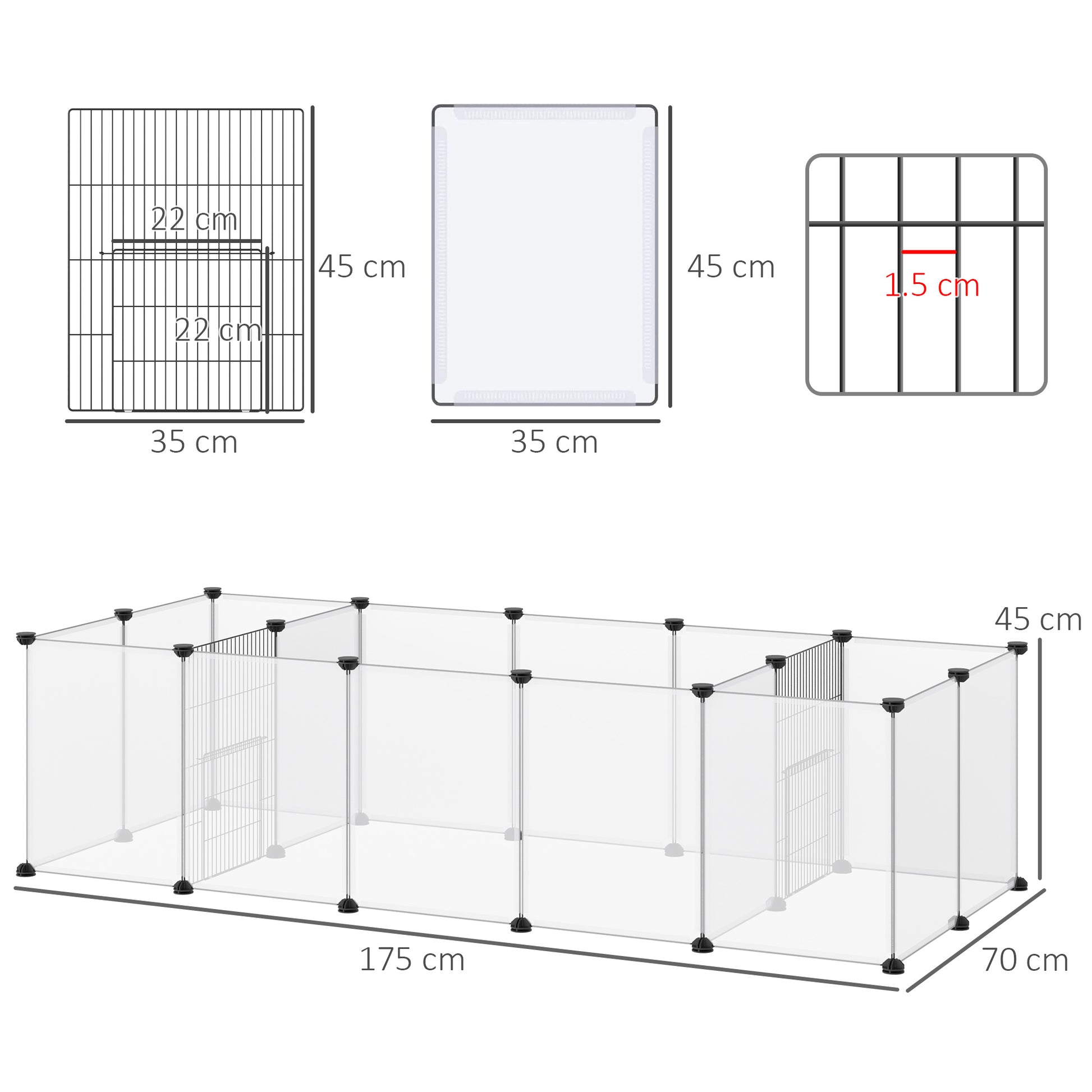 PawHut Pet Playpen DIY Small Animal Cage 18 Panels Portable Metal Wire Yard Fence for Guinea Pigs Hedgehogs, 175 x 70 x 45 cm, White