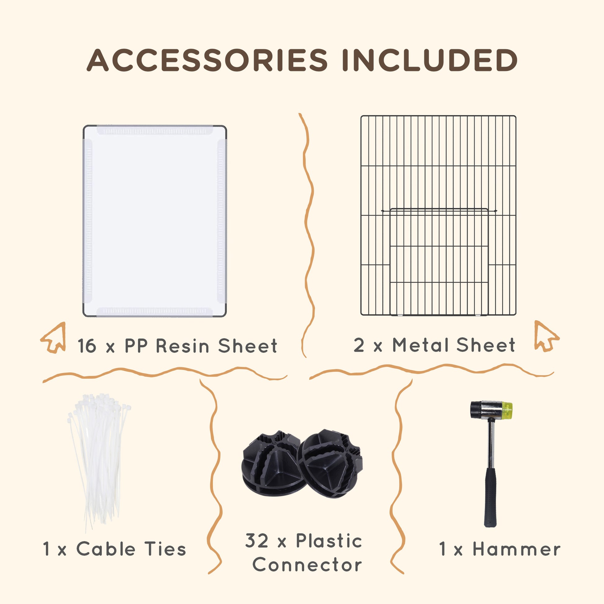 - With 18 panels and 12 connectors, you can shape the cage in different ways