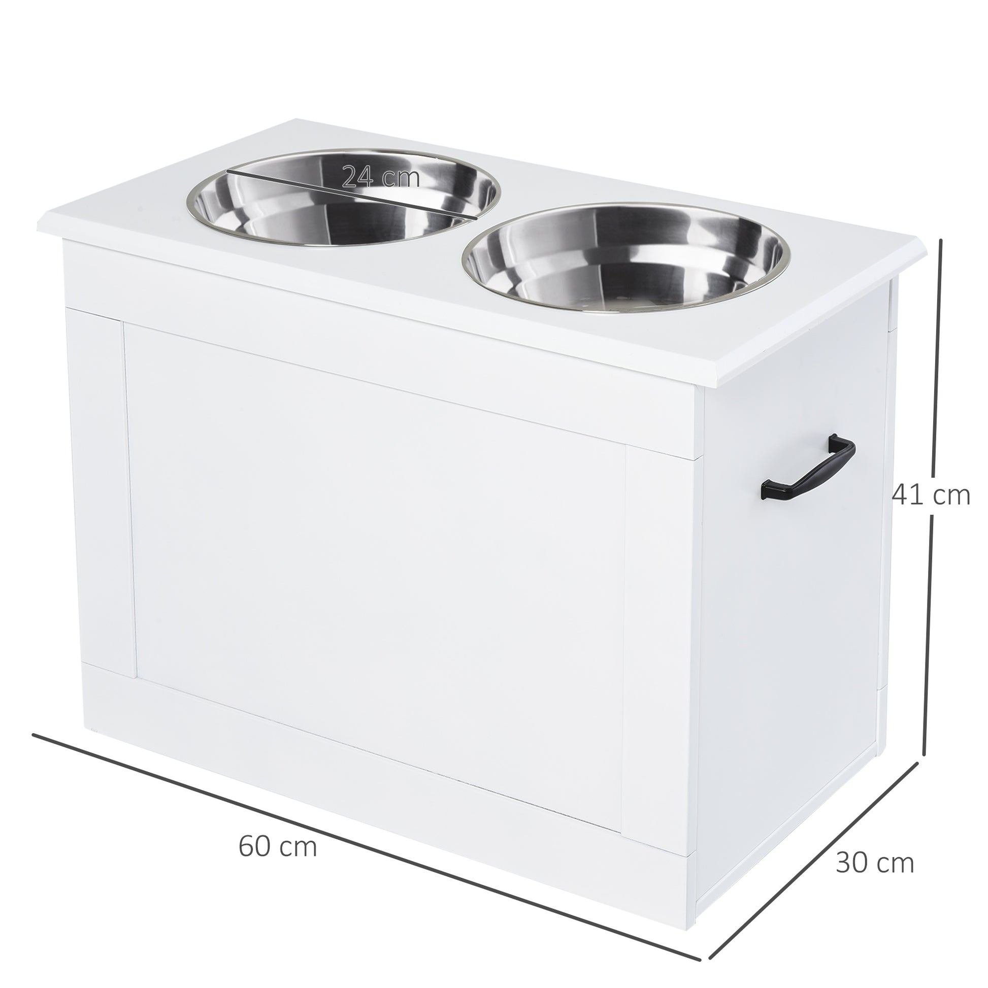 PawHut Raised Pet Feeding Storage Station with 2 Stainless Steel Bowls Base for Large Dogs and Other Large Pets, White