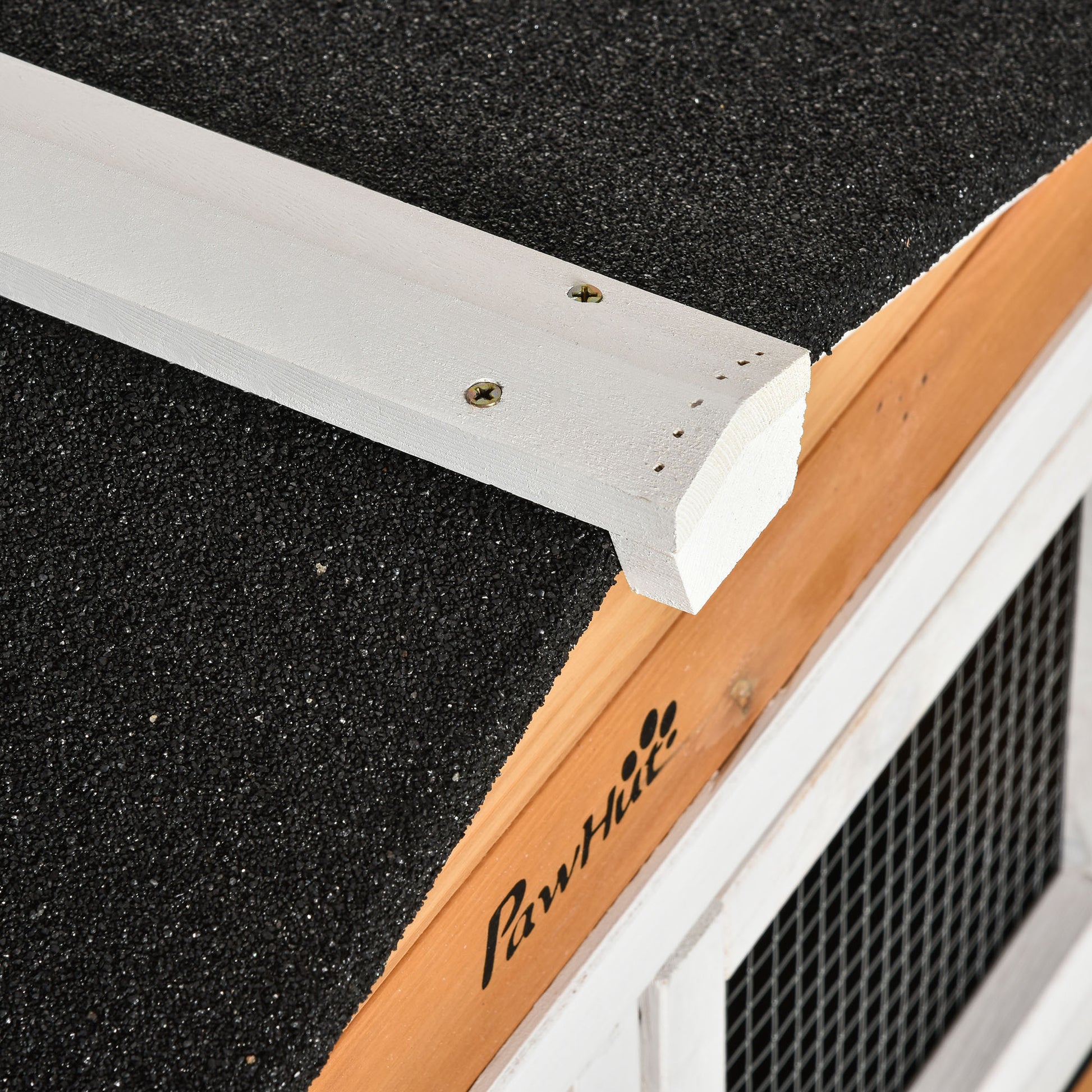 The ideal home for rabbits and other small pets – this spacious rabbit cage from PawHut consists of two floors with a large house and a guinea pig run – they'll roam easily using the ramp. Made from solid fir wood, the indoor guinea pig cage is covered in water-resistant paint for protection against wet weather, whilst the tilted asphalt roof ensures the area is dry. Watch your pets in their new house through the mesh wire, which keeps the area ventilated.