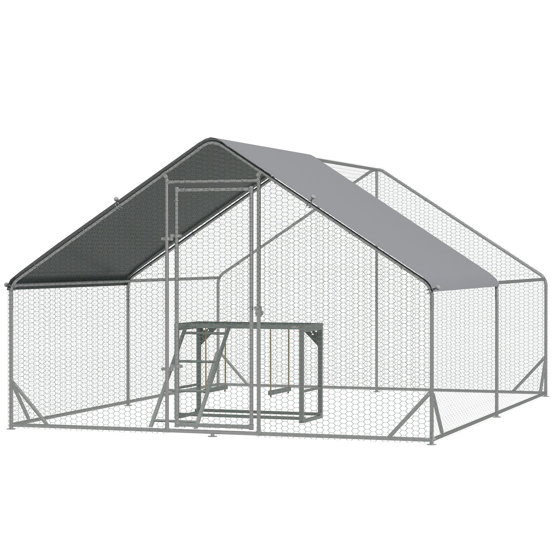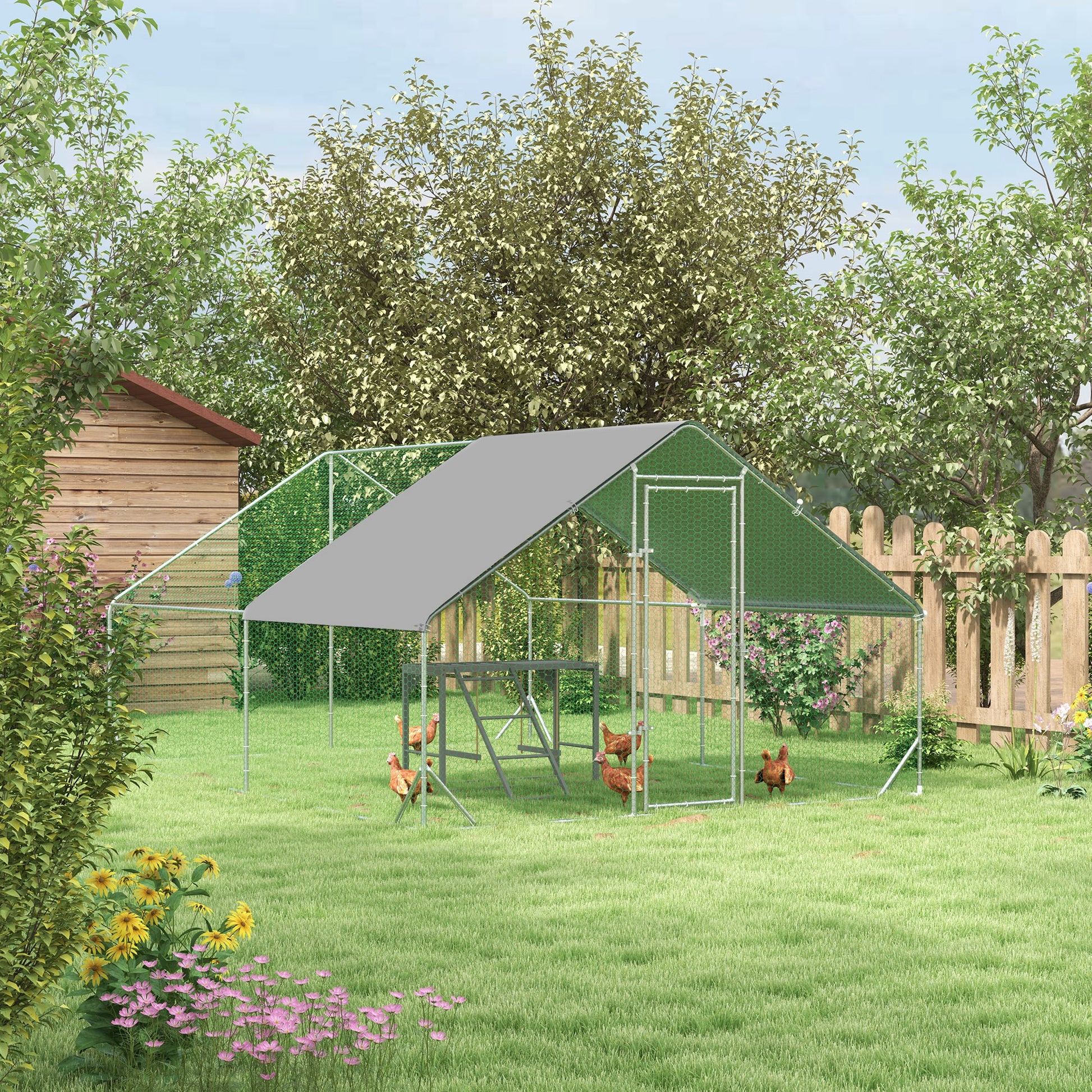 PawHut Walk In Chicken Run with Chicken Activity Shelf and Cover, 3 x 4 x 2m