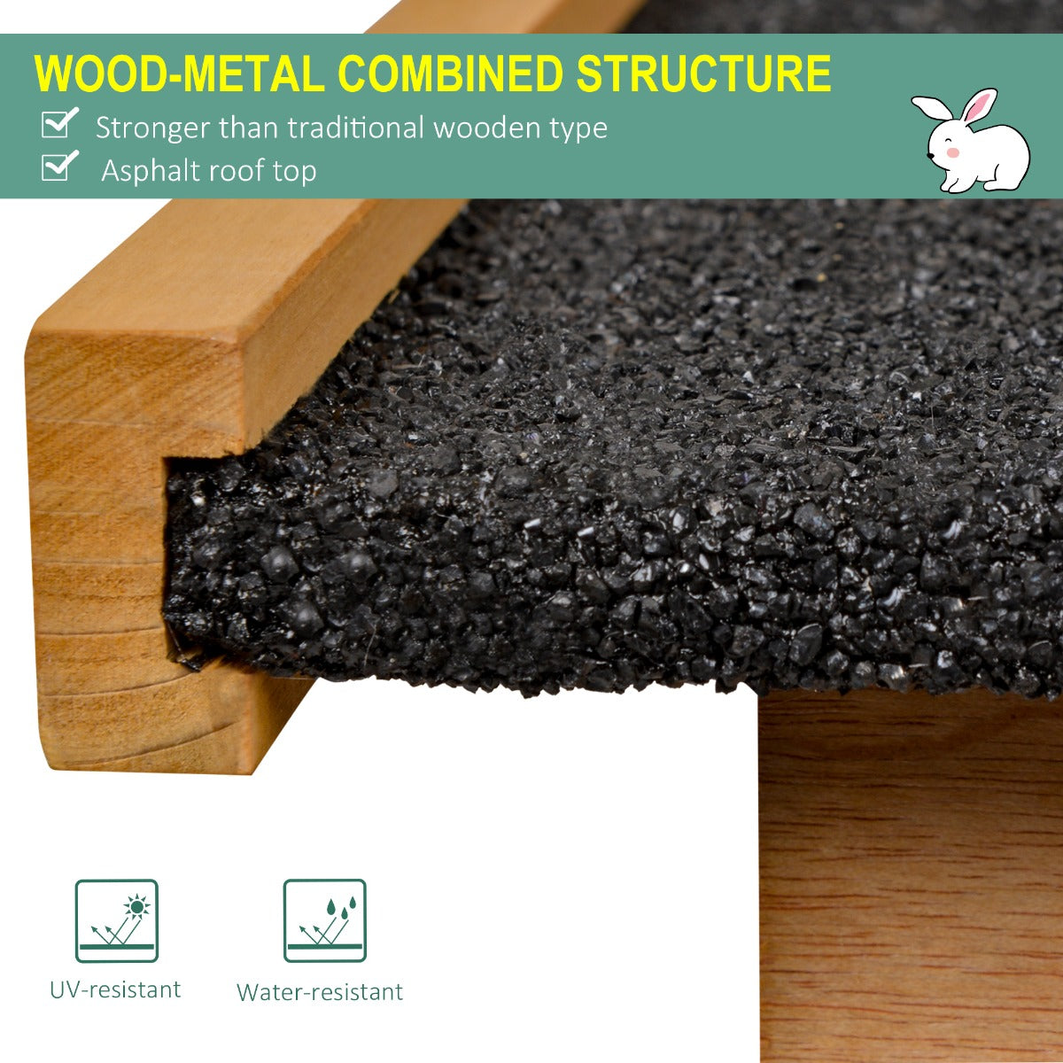 PawHut Wood / Metal Rabbit Hutch Elevated Pet House Bunny Cage with Slide-Out Tray Asphalt Openable Roof Lockable Door Outdoor