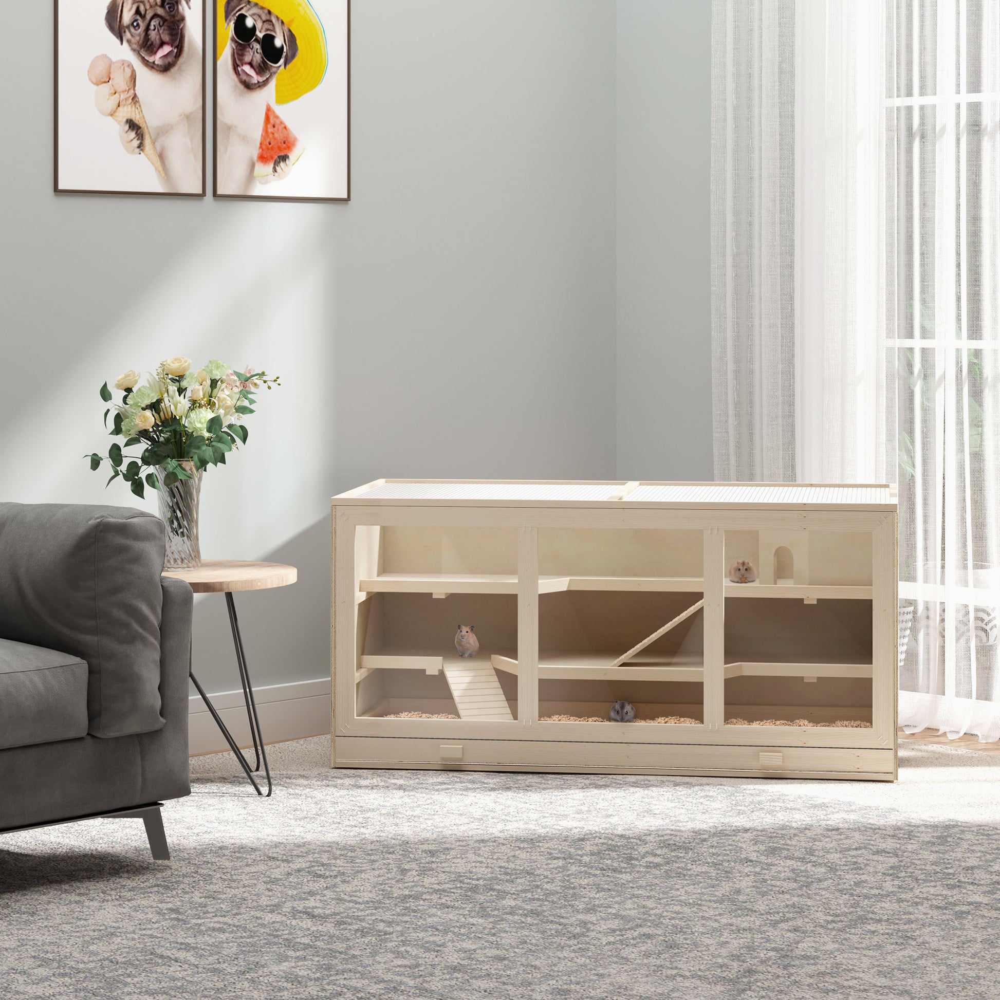 PawHut Wooden Hamster Cage Mouse Rats Mice Rodent Small Animals Hutch Exercise Play House Pen 115L x 60W x 58H(cm)