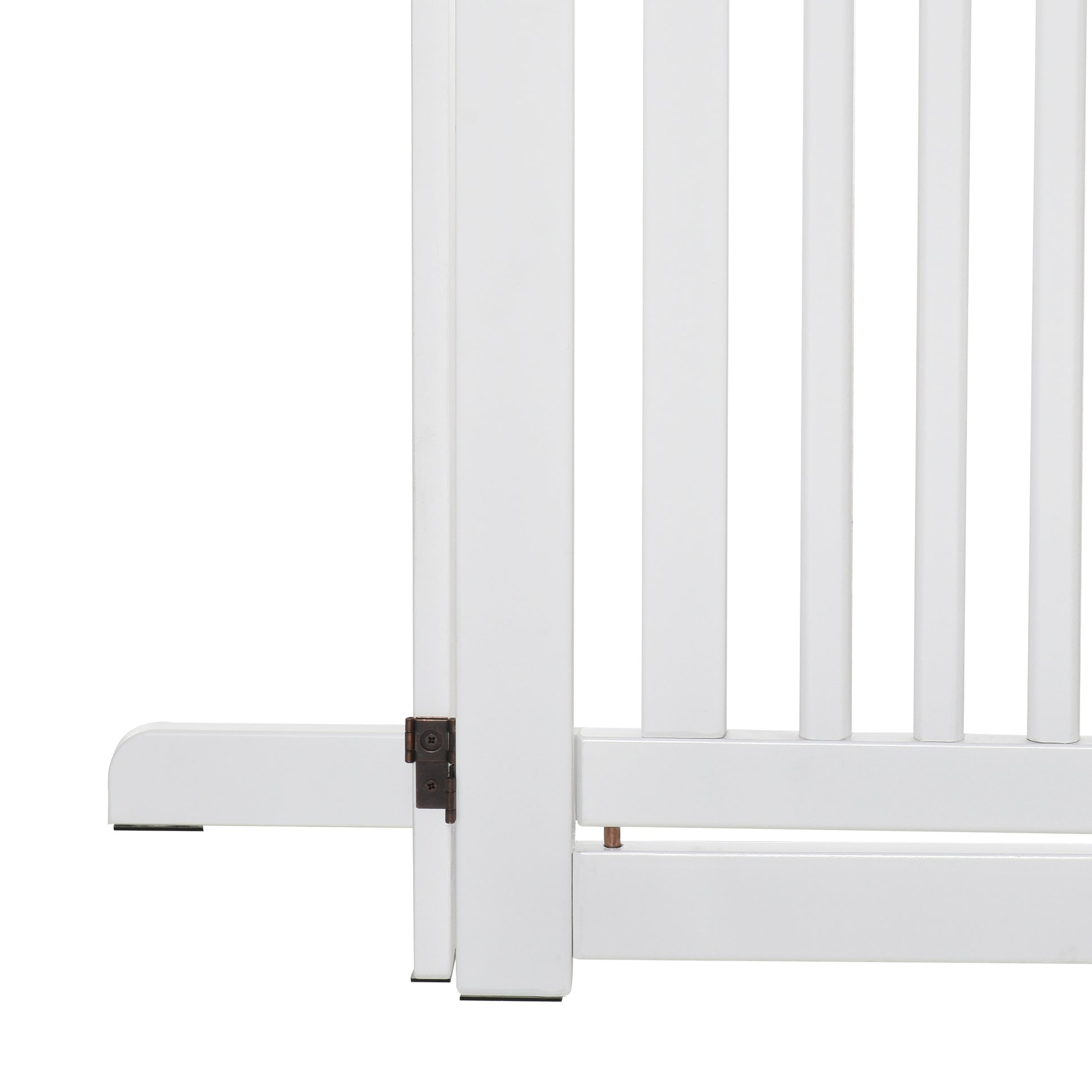 PawHutPet Gates MDF Freestanding Expandable Dog Gate Wood Doorway Pet Barrier Fence w/ Latched Door White