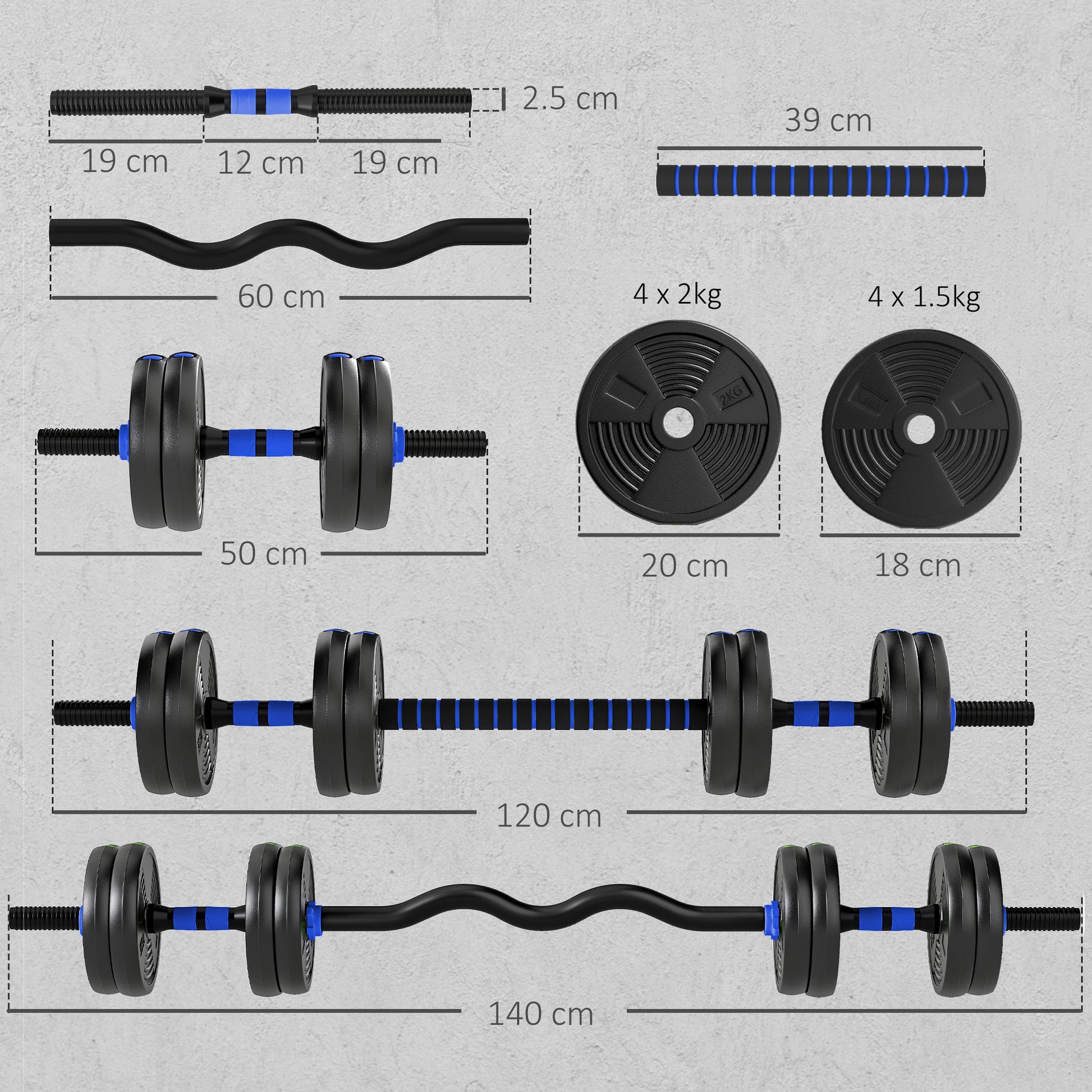 SPORTNOW 15 kg 3-in-1 Adjustable Dumbbell Set, Adjustable Weight Set with Extension Bar, Black