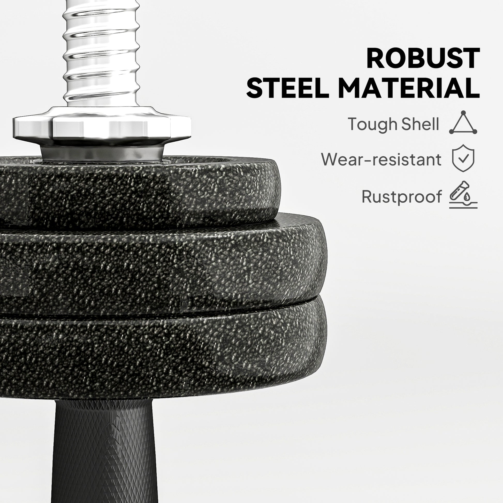 Upgrade your home gym with the SPORTNOW adjustable dumbbell and barbell set. Featuring 30 kg of total weight, this set includes 8 x 2.5 kg and 4 x 1.25 kg plates, two dumbbell bars, a barbell bar and four secure spinlocks. The knurled steel handles provide a firm, anti-slip grip, while the robust, solid steel plates ensure long-lasting use. Easy to assemble and compact for storage, it's great for beginners and strength trainers alike.