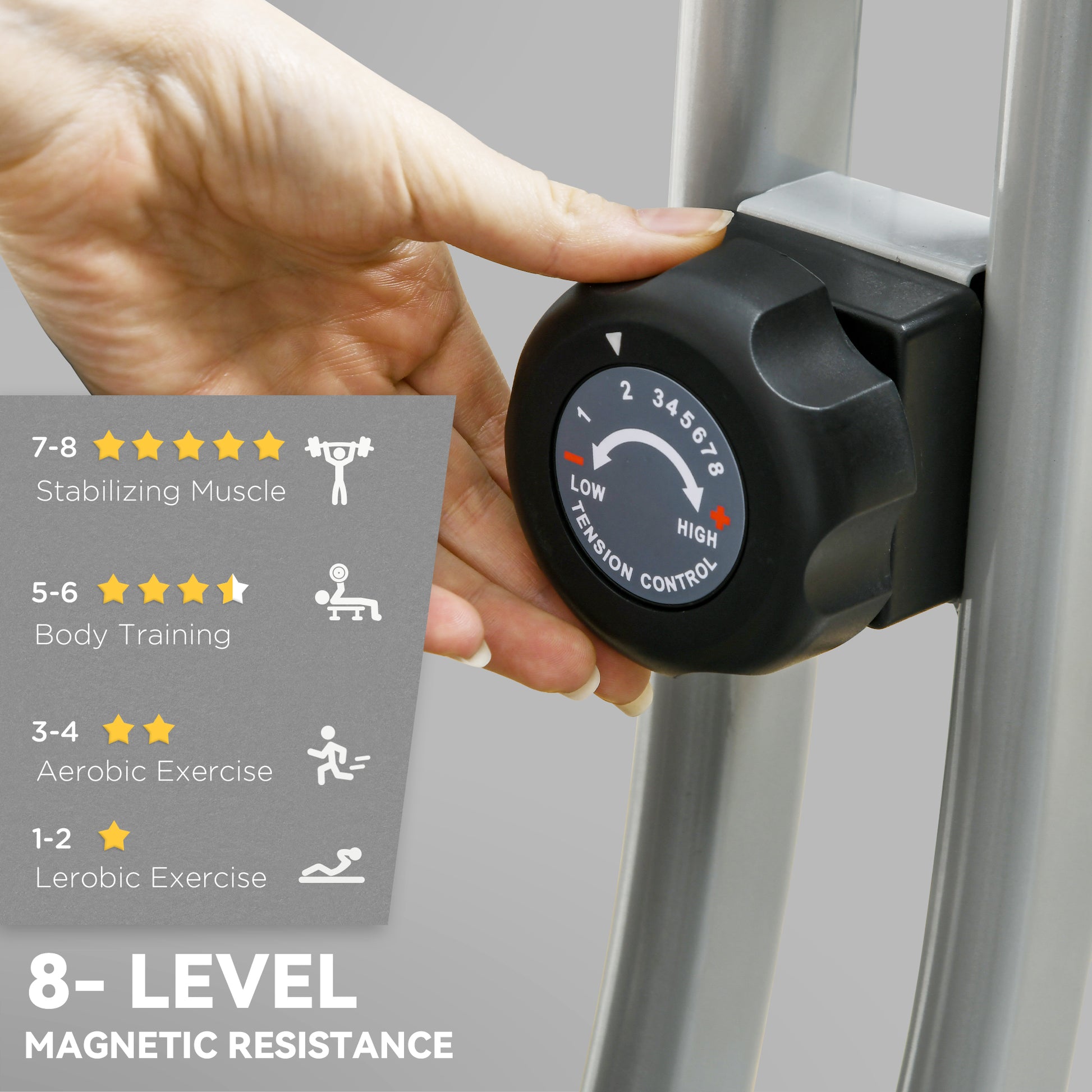 - 8-level adjustable magnetic resistance ensures smooth and silent workouts