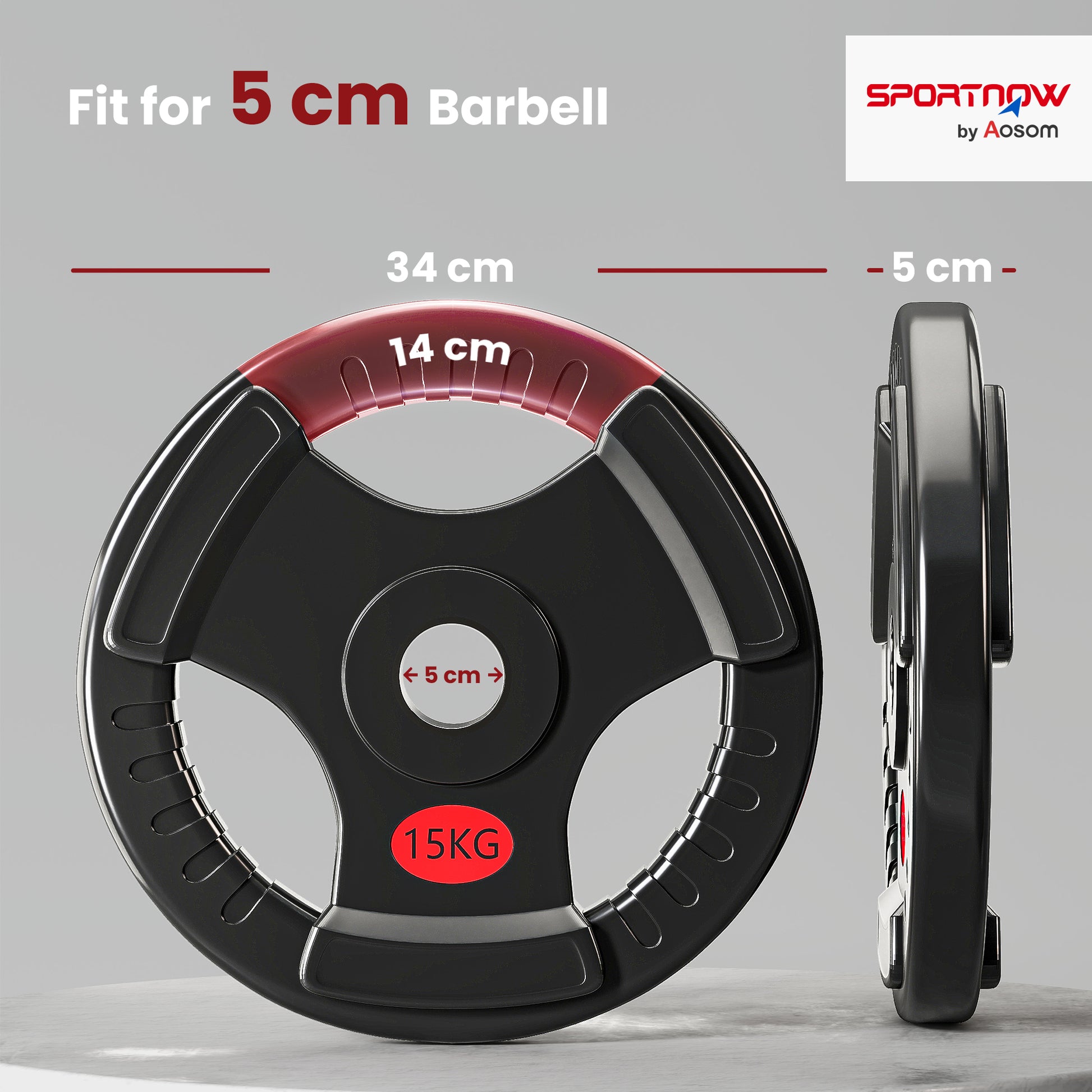 SPORTNOW Olympic Weight Plates, 2"/5cm Weight Disc Pair with Tri-Grips, 2 x 15kg Dumbbell Plates for Weightlifting and Strength Training Home Gym Fitness Workout, Black