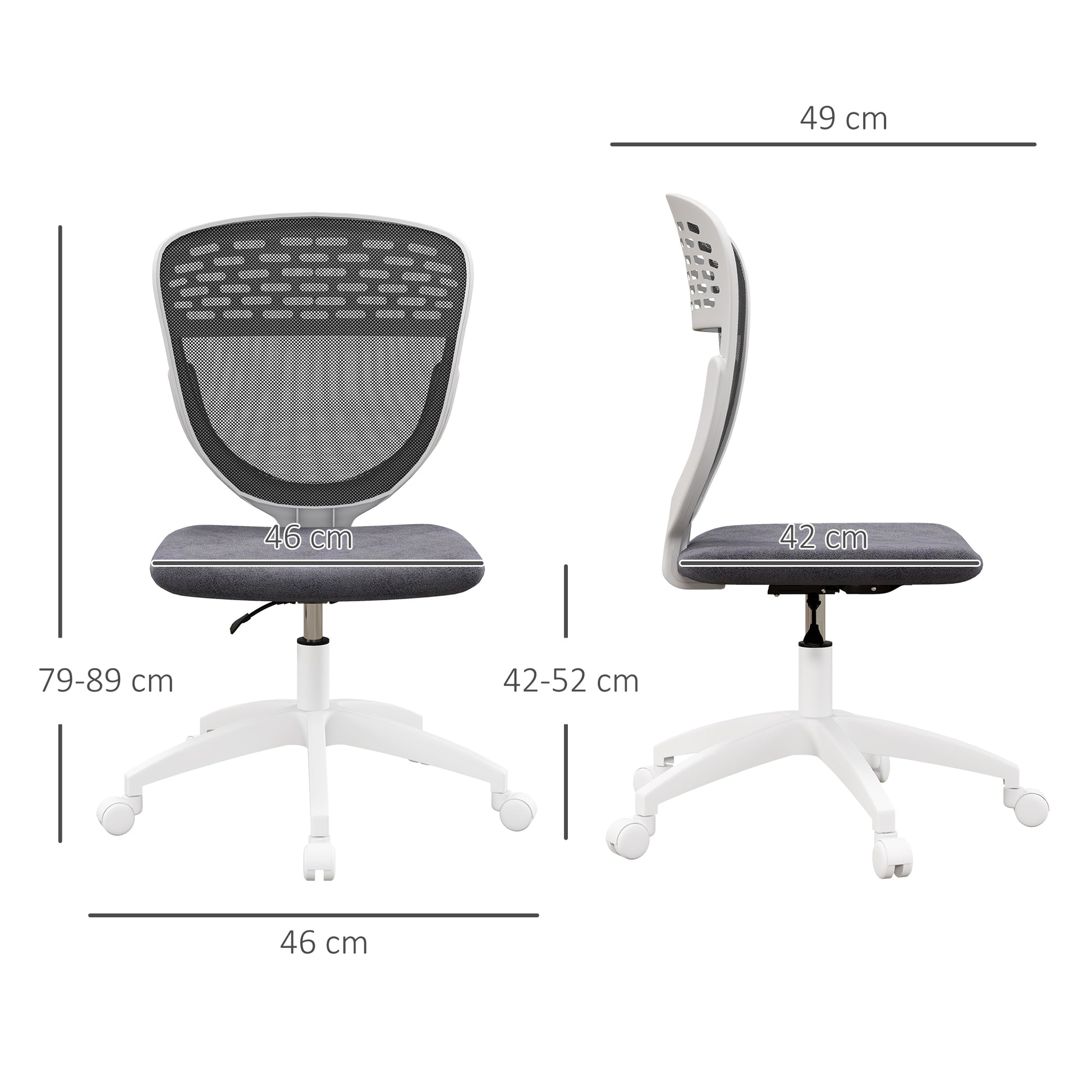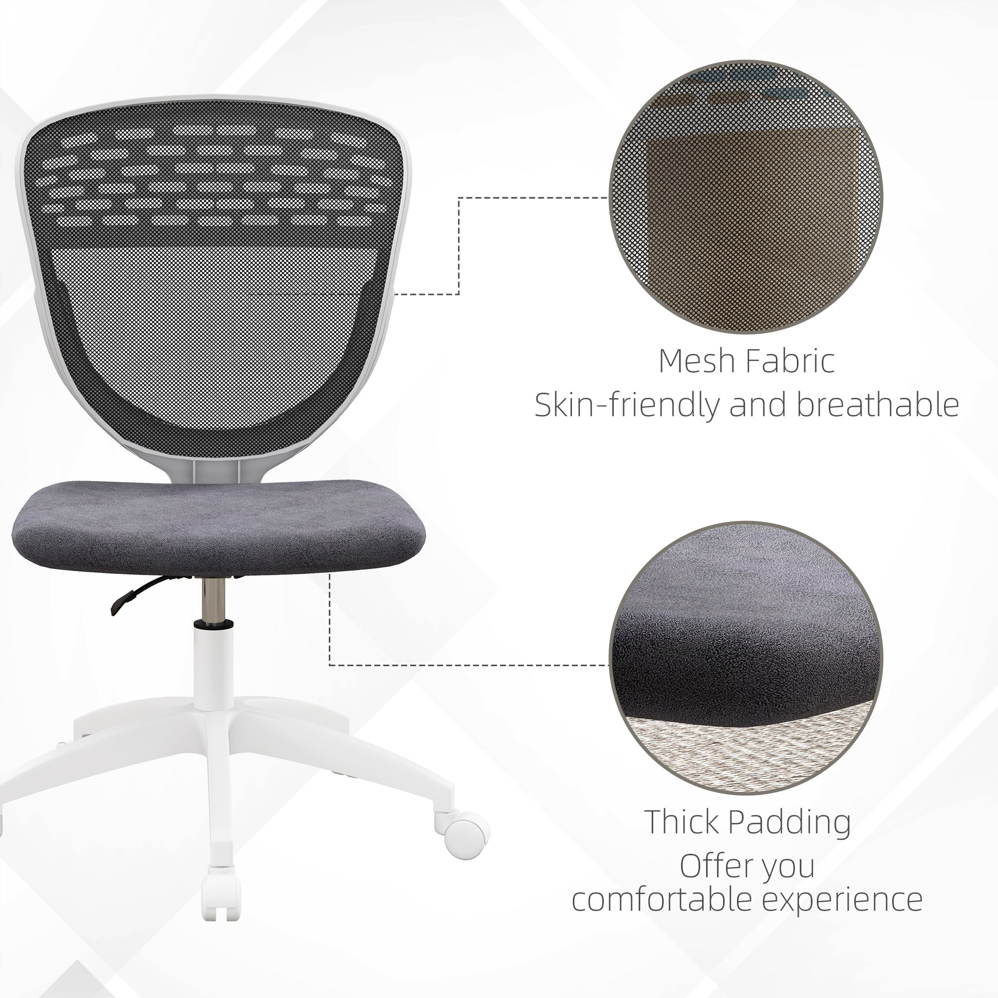 Vinsetto Armless Desk Chair, Mesh Office Chair, Height Adjustable with Swivel Wheels, Grey