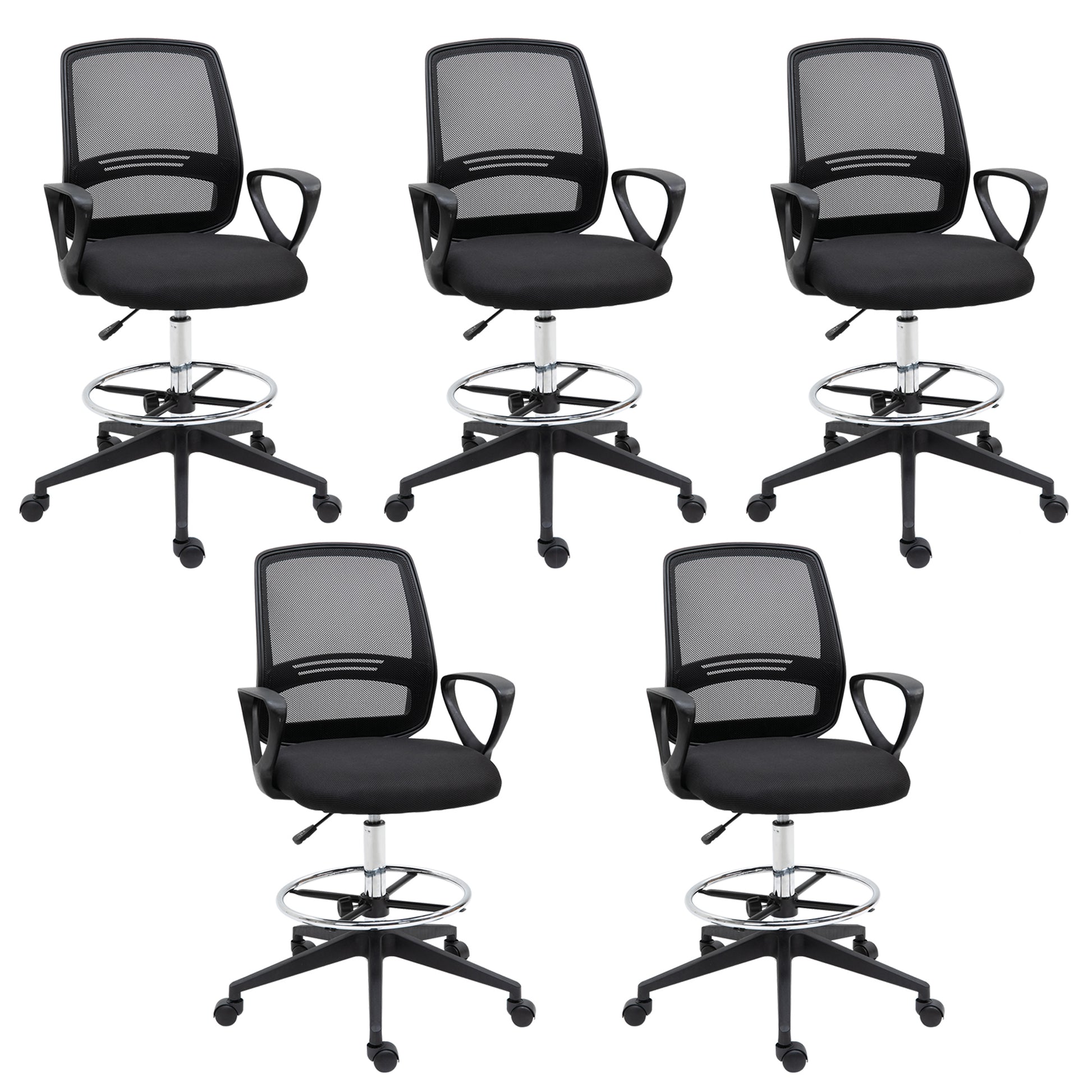 Vinsetto Ergonomic Mesh Back Draughtsman Chairs Tall Office Chair with Adjustable Height and Footrest 360° Swivel, Set of 5