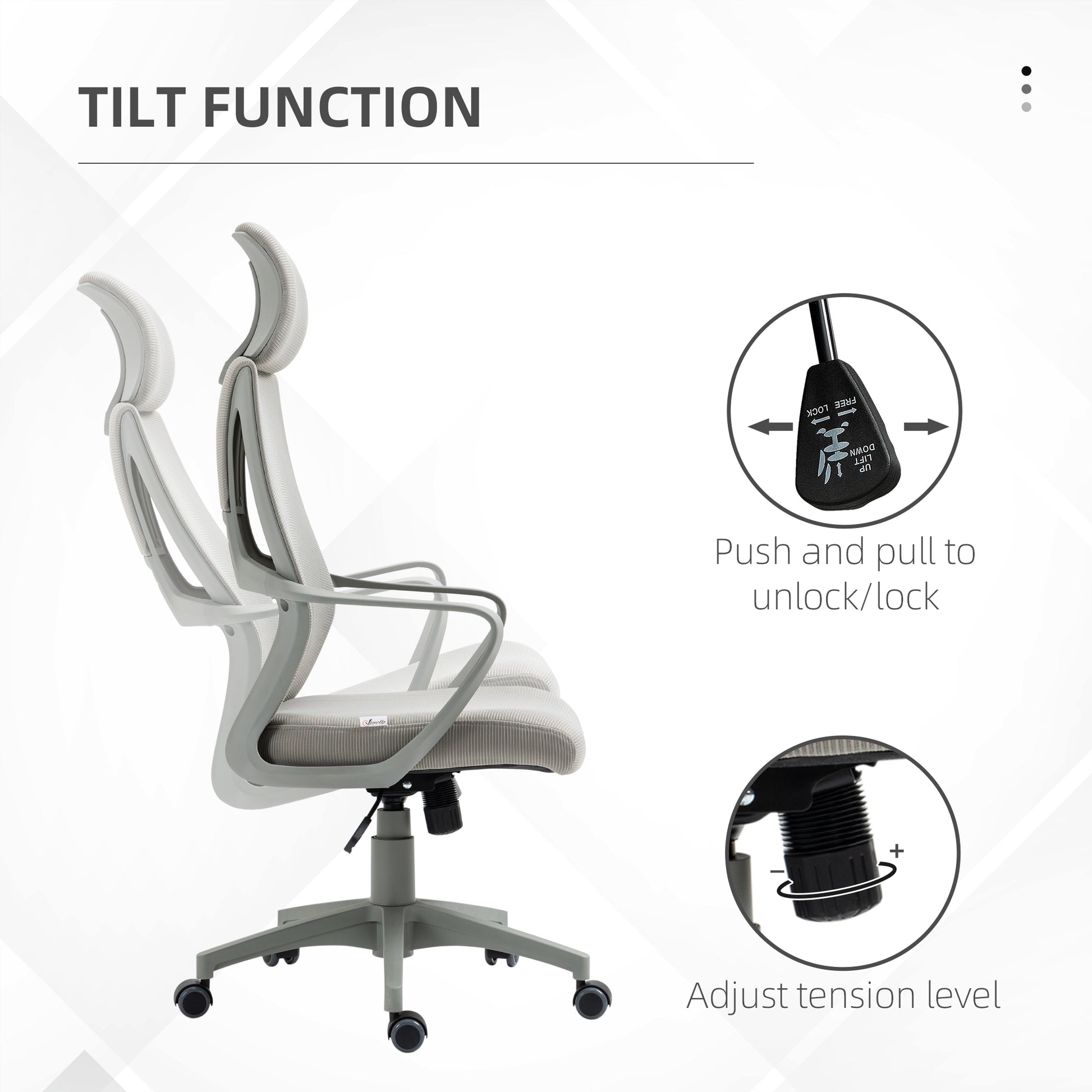 Vinsetto Ergonomic Office Chair w/ Wheel, High Mesh Back, Adjustable Height Home Office Chair - Grey