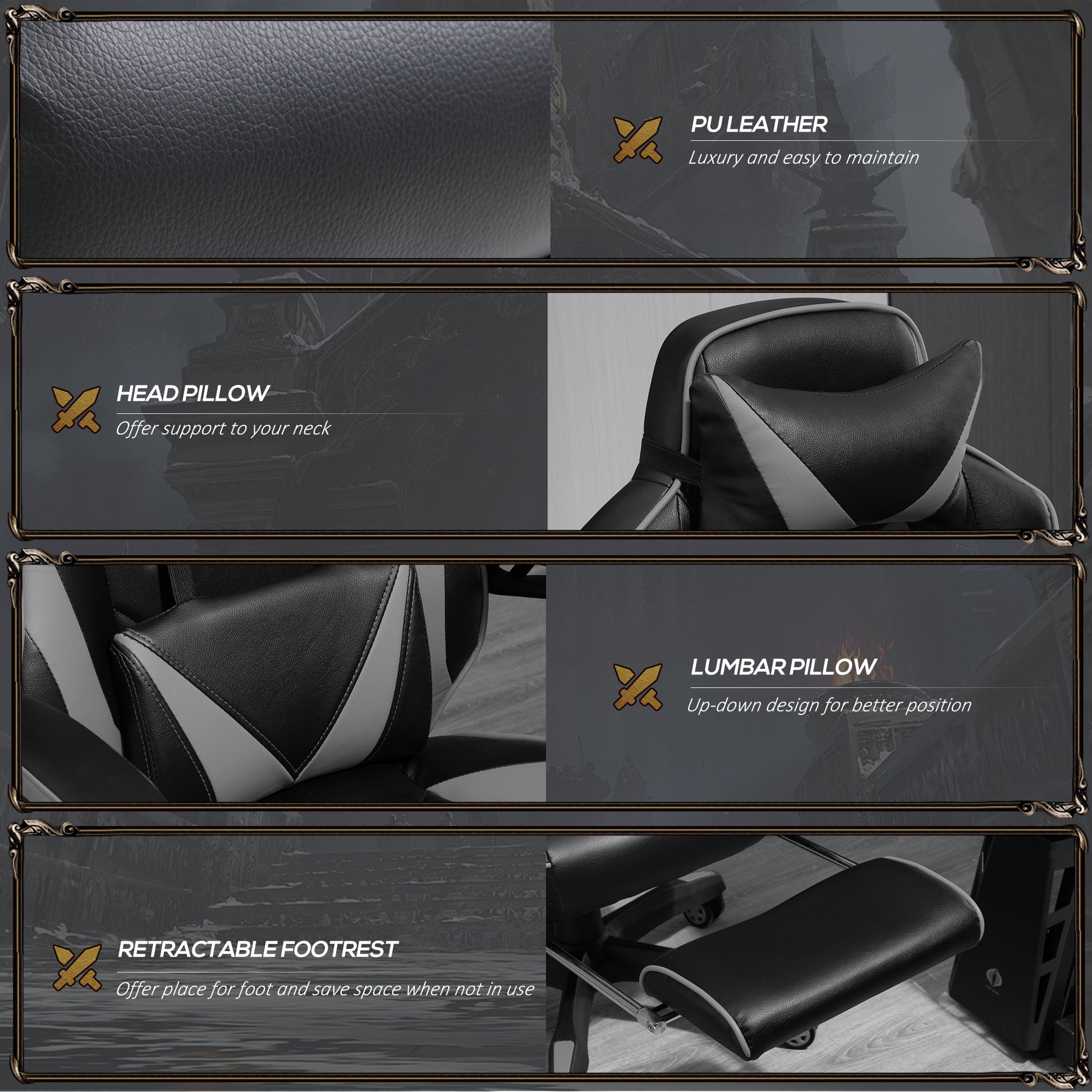 Vinsetto Ergonomic Racing Gaming Chair Office Desk Chair Adjustable Height Recliner with Wheels Lumbar Support Retractable Footrest Home Office Grey
