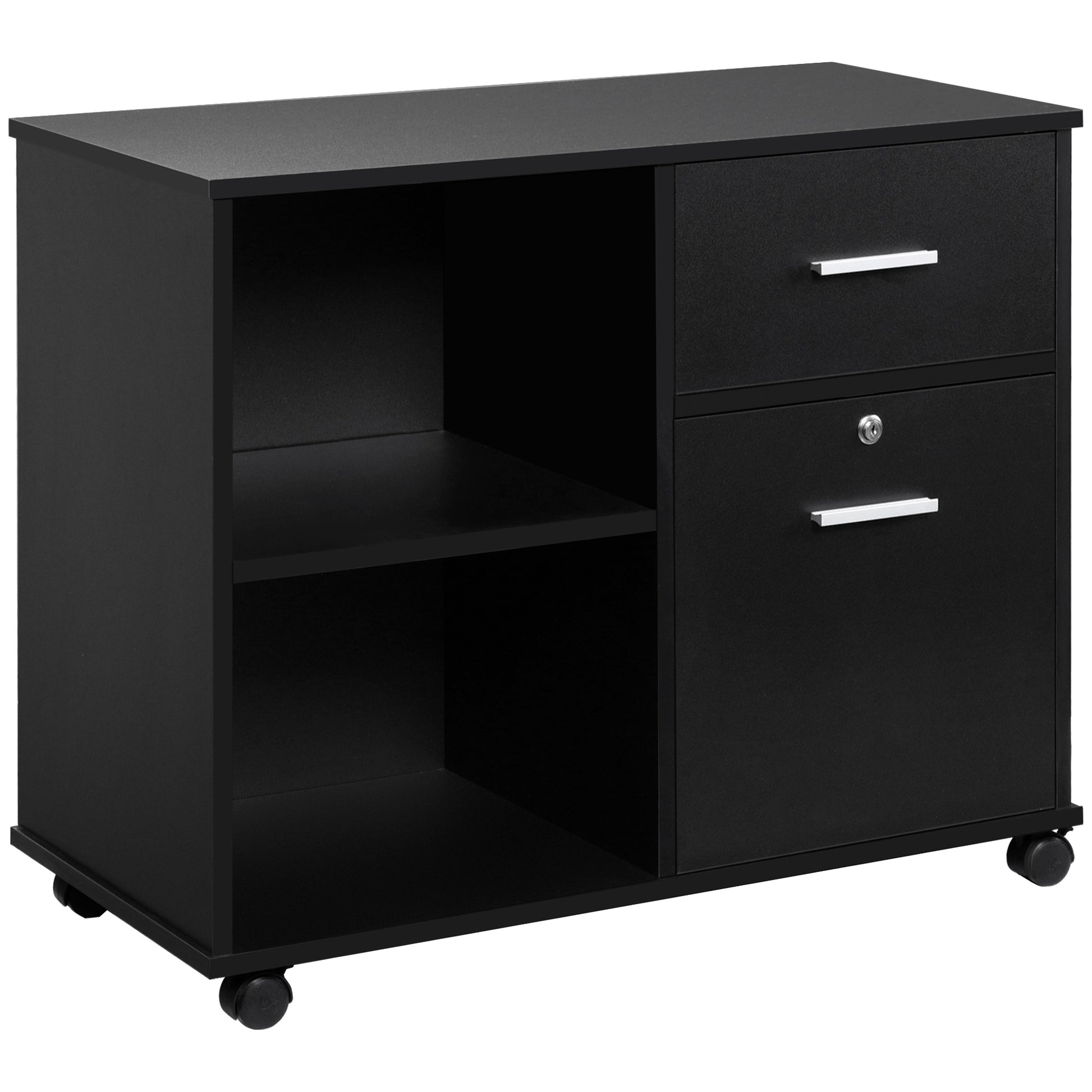 Vinsetto Filing Cabinet with Wheels, Mobile Printer Stand with Open Shelves and Drawers for A4 Size Documents, Black