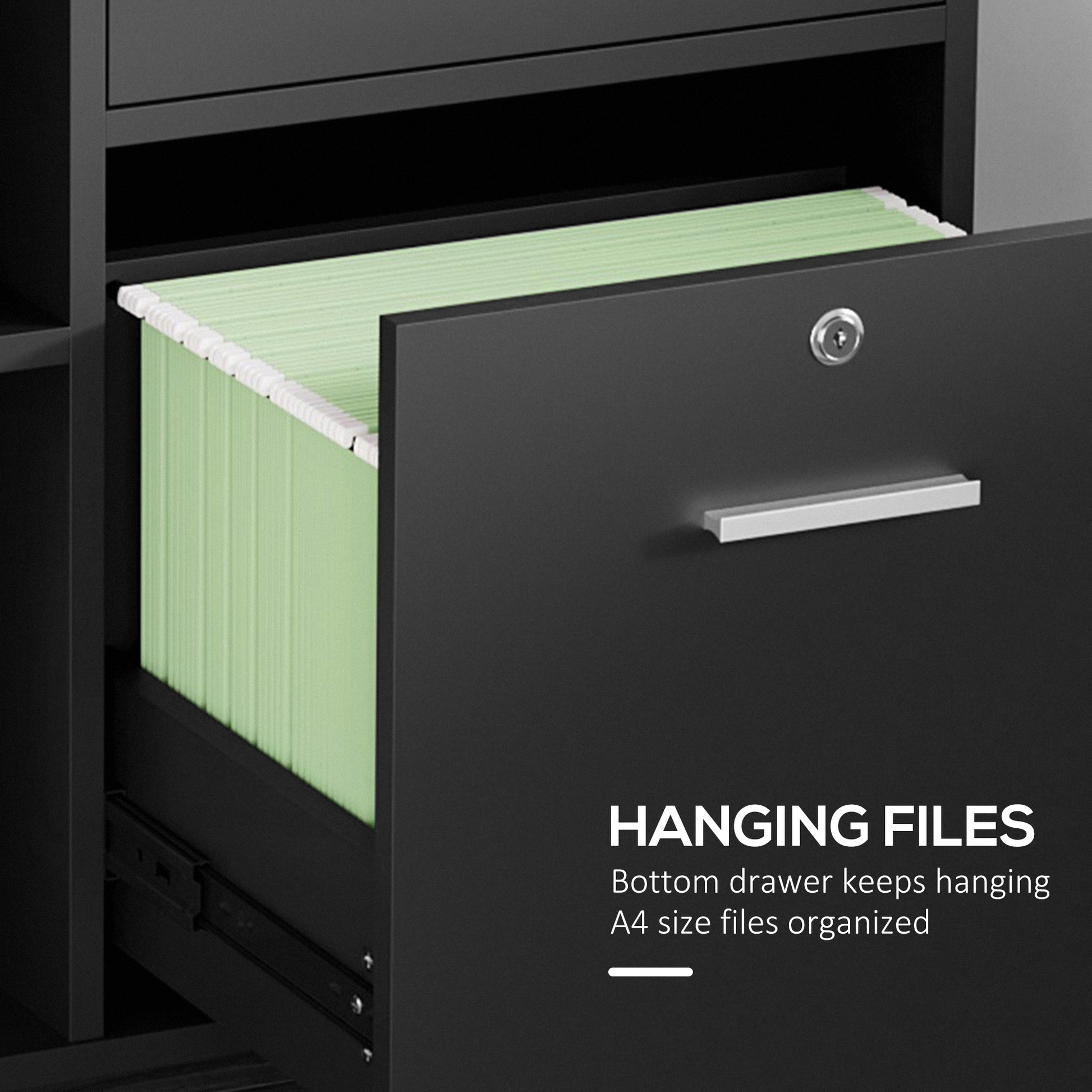 - Large bottom drawer is perfect for A4 sized files. Lockable for safety