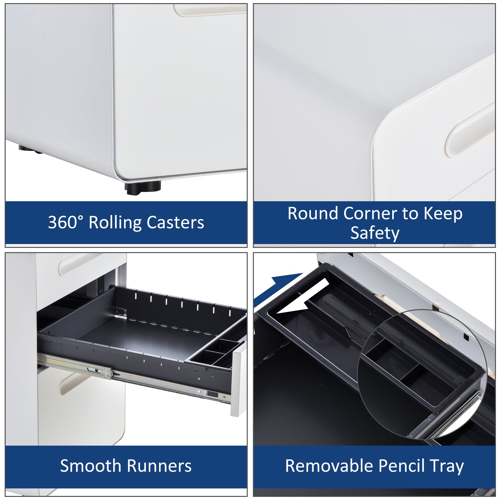 - Only one drawer opens at one time for safety